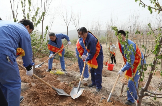 经过一个多小时的共同努力,一棵棵树苗迎风而立,成行列阵。